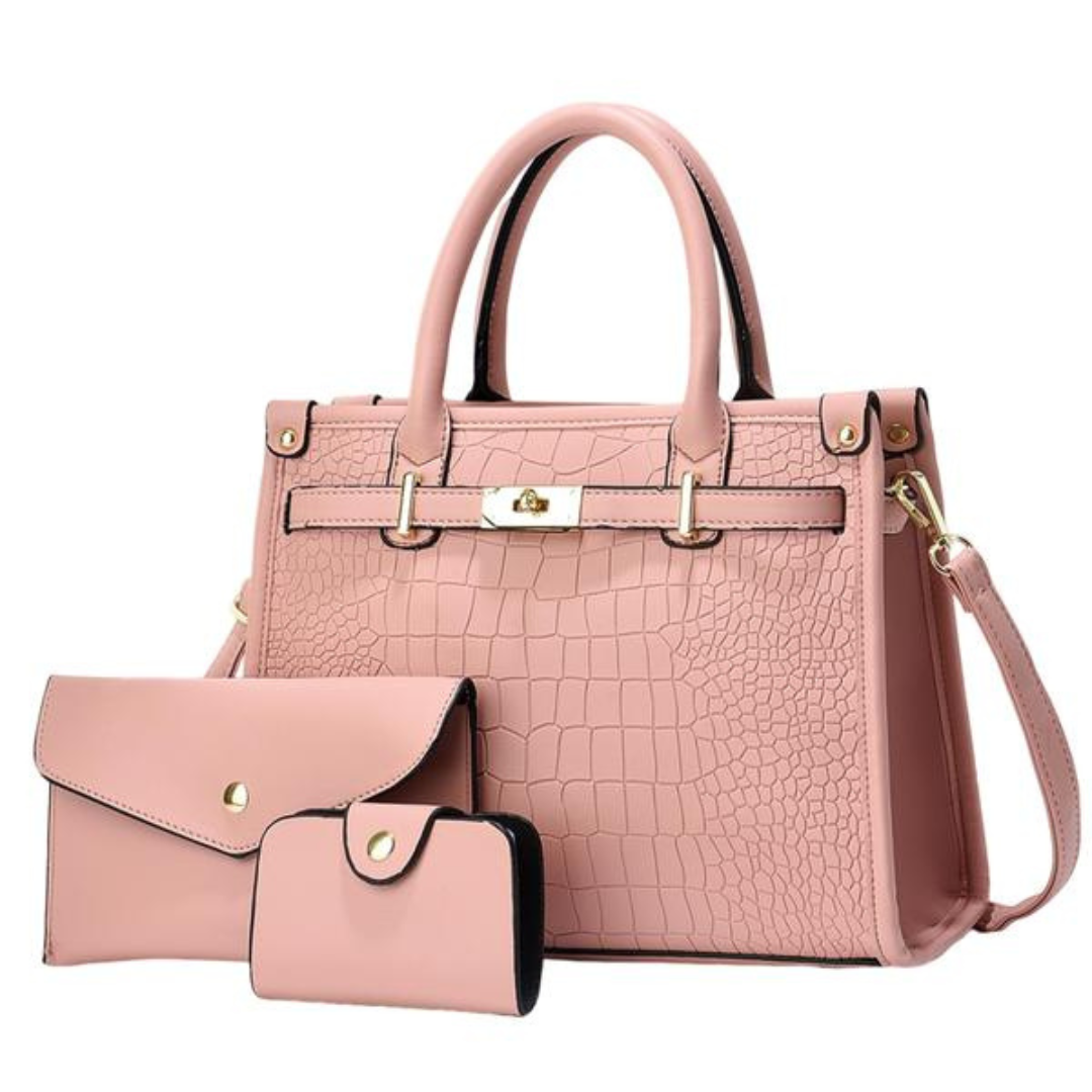 Anora │ Crocodile-Embossed Crossbody Handbag Set